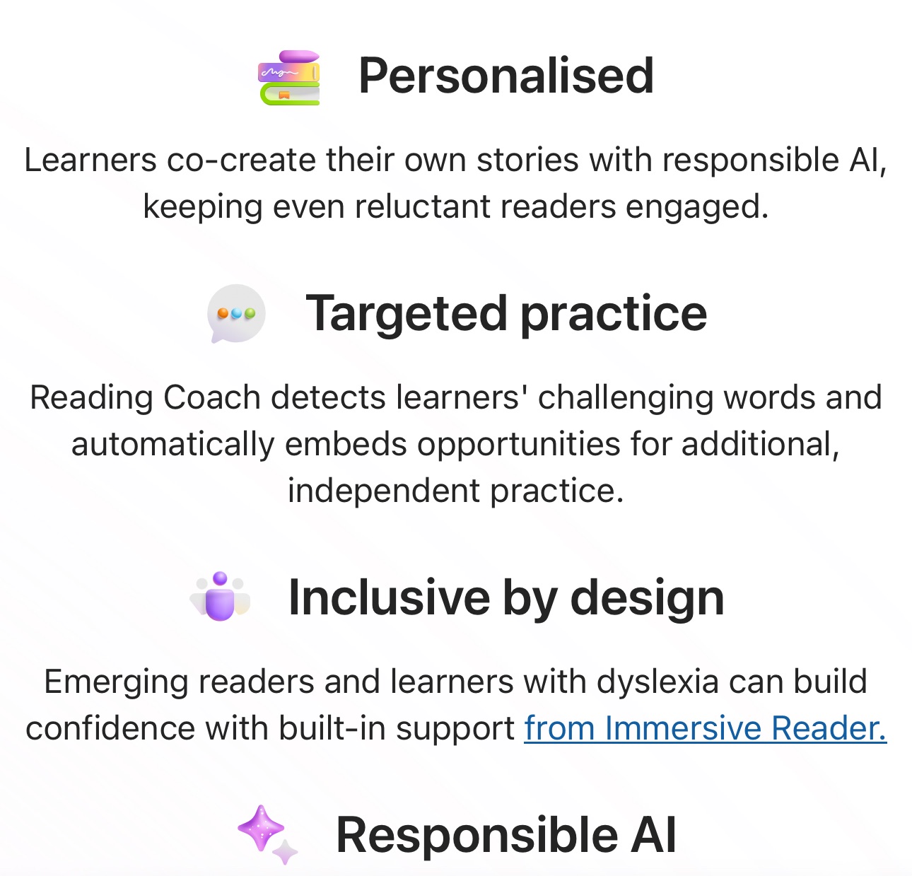 Here is Microsoft Reading Coach:Engage students and improve reading fluency with AI-powered stories and personalised practice.